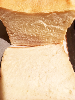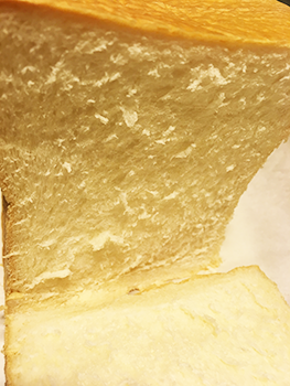 ふわっ&しっとりとした柔らかい食パンです。このお店はプレーンの普通の角食もいいですが、それ以外の色んな味の食パンがお勧めでした。色々試食をさせていただけます。シャンパンとマスカットとか、ハニーレモンとか、オリーブ、どれも美味しかったです。オリーブ入りの物1斤(少し小さめ)と角食1本(2斤)を買いました。オリーブ入りのほうは生のままペロッと食べてしまいましたが、シーチキンとか色んな具をサンドイッチするにも相性が良いそうです。チョコレート味が一番人気なんだとか。