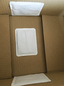 段ボールに貼るカイロが3つ施してあり、なんだかもう『おパン様』といった感じです。急な温度の変化による生地の変質を避けるためなのでしょう。