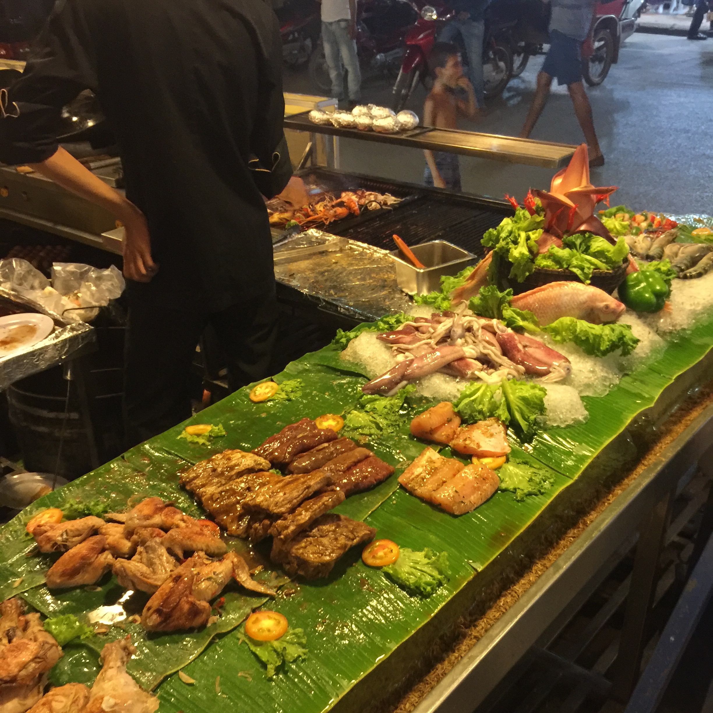 サソリ、クモ、タガメ、ヘビ、などの串焼きの屋台もあり、