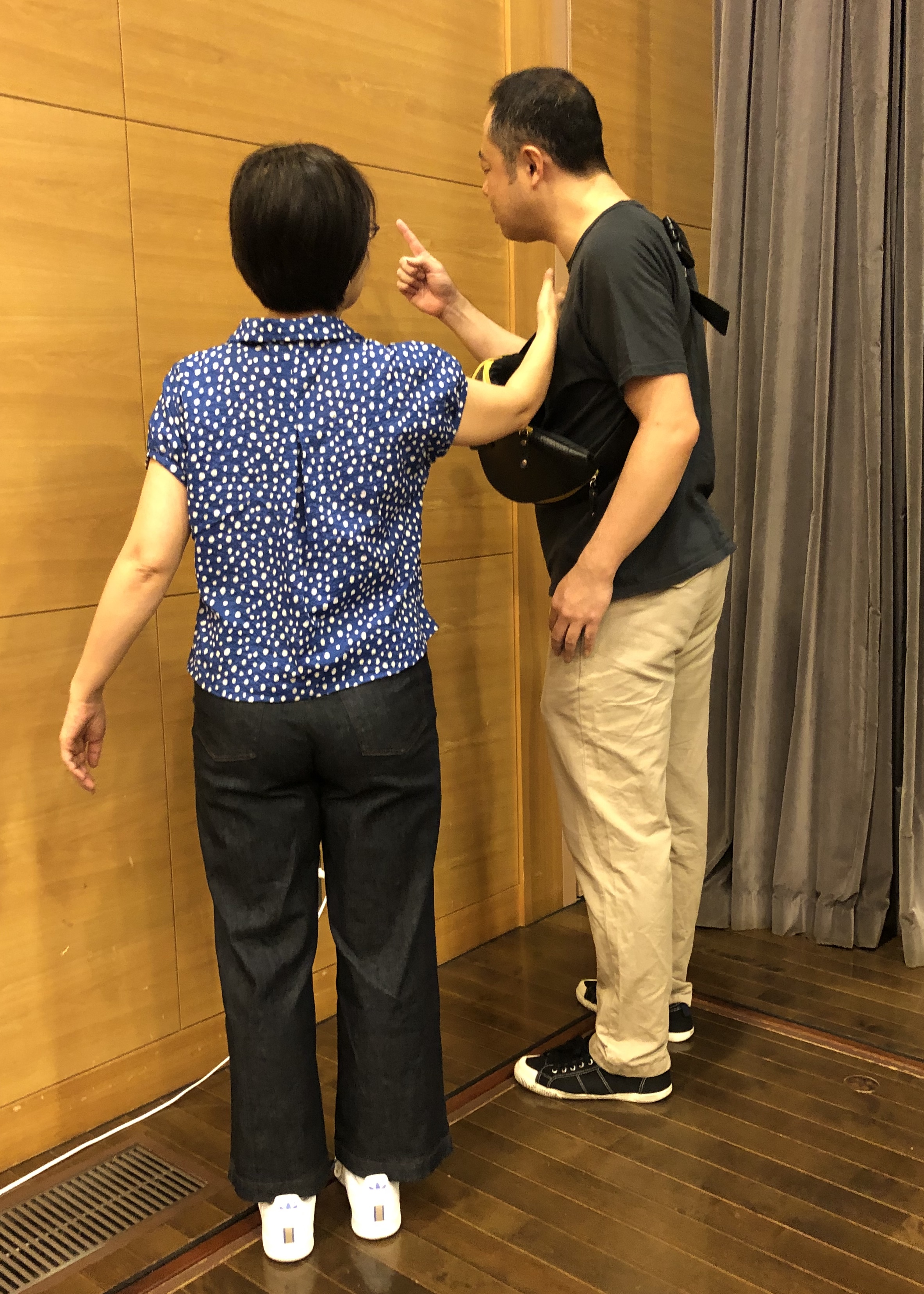 仕上がりに納得できなかったのか、夫婦漫才師、必死のネタ合わせで最後の追い込み。