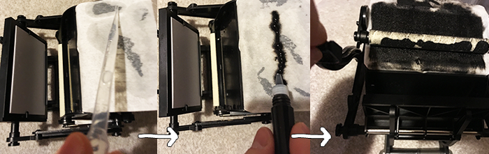 本体の組み立ては割とあっという間に出来たのですが、この印字部分のパーツ切り離しとバリ取り…これがやたら時間かかりました。小さいのでうっかりするとバリ取りの瞬間に大切な文字パーツがピョーンとどこかへ飛んで行ってしまうのです。たかがバリを取るのに一苦労…。