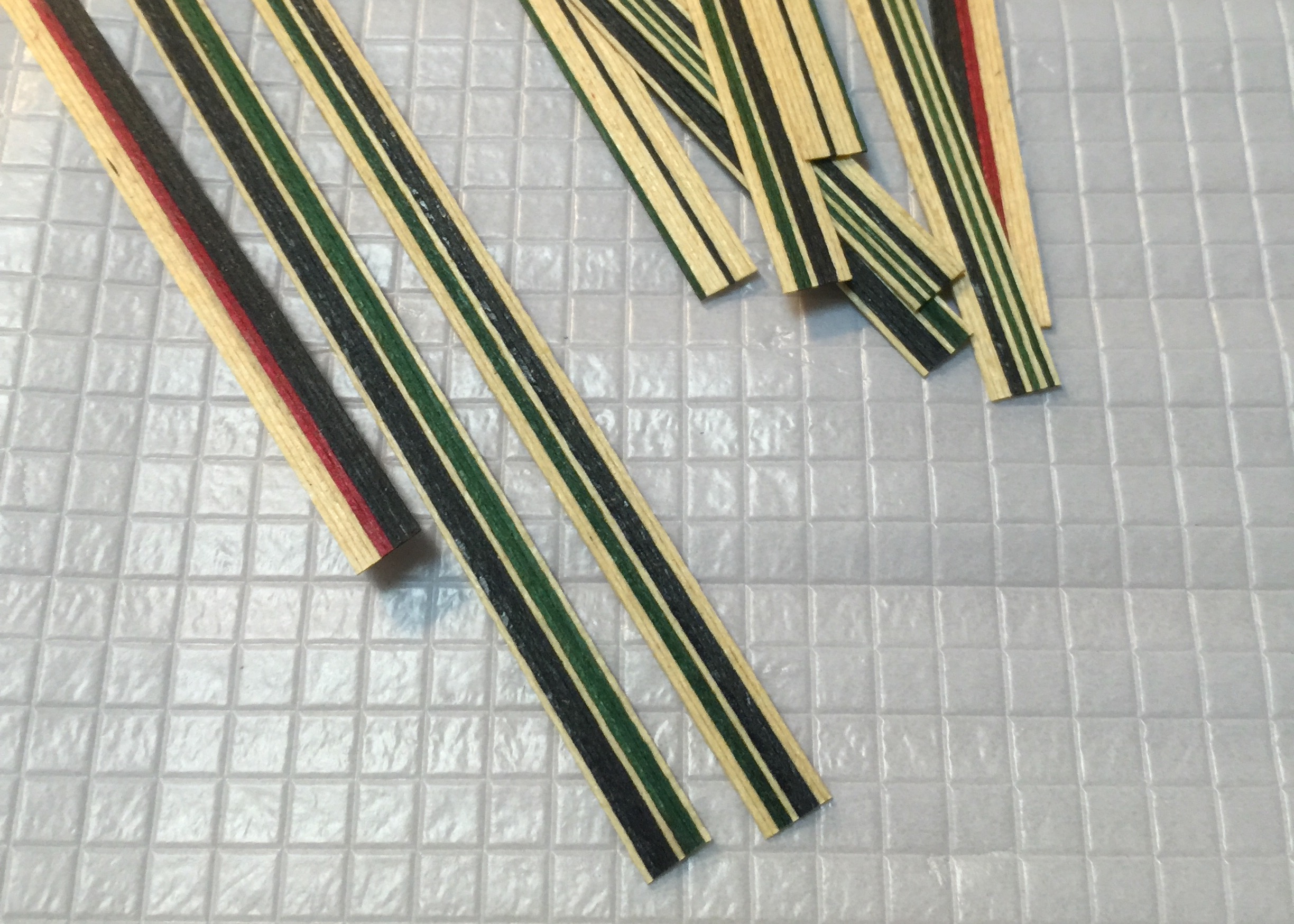 これを今まではペーパーで均していたのですが、0.6ミリなので、ガツガツペーパーをかけると木が無くなってしまいますし、かといって1000番くらいのペーパーでは細かすぎてボンドが目詰まりして削れない、、、