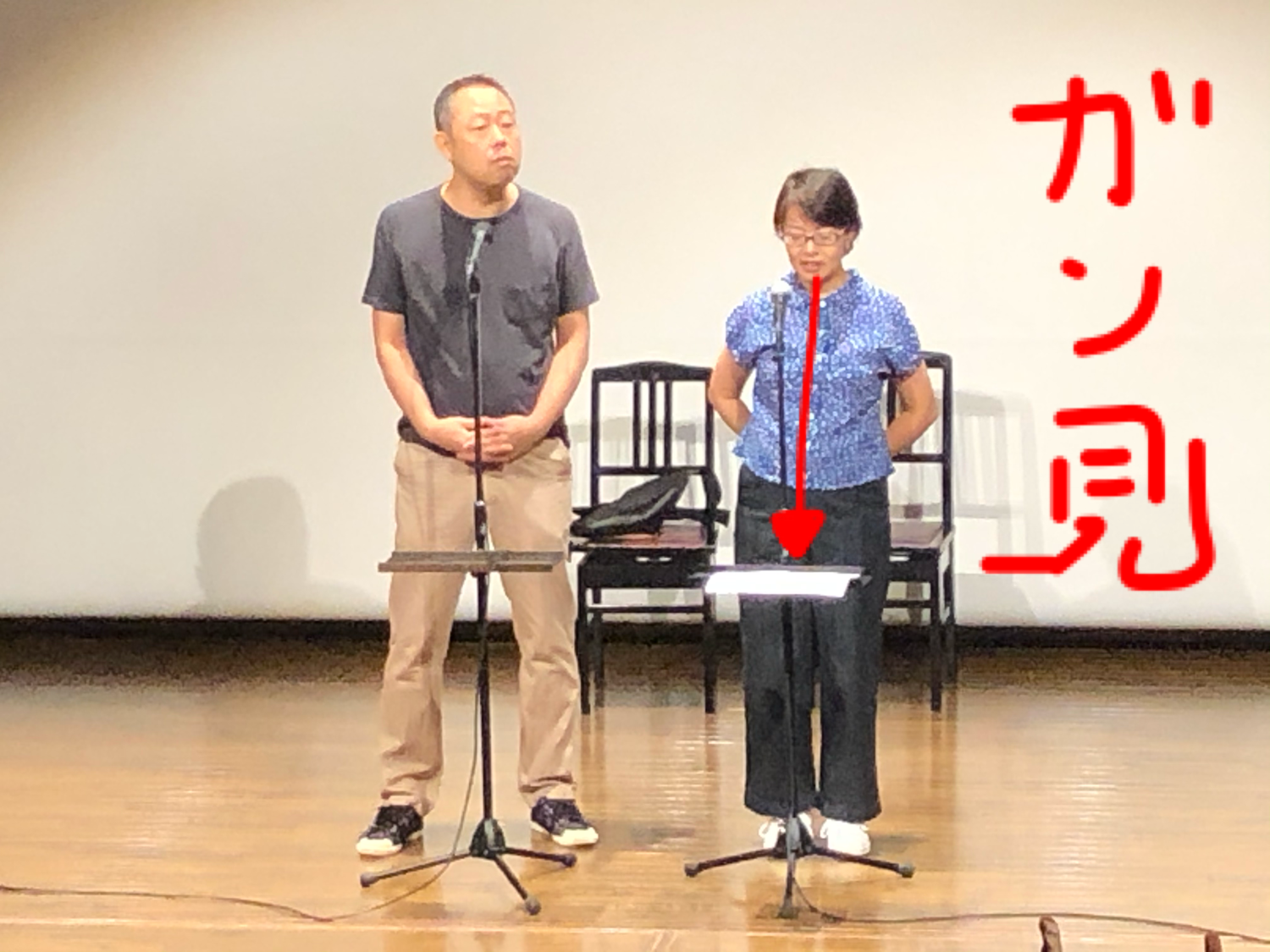 仕上がりに納得できなかったのか、夫婦漫才師、必死のネタ合わせで最後の追い込み。