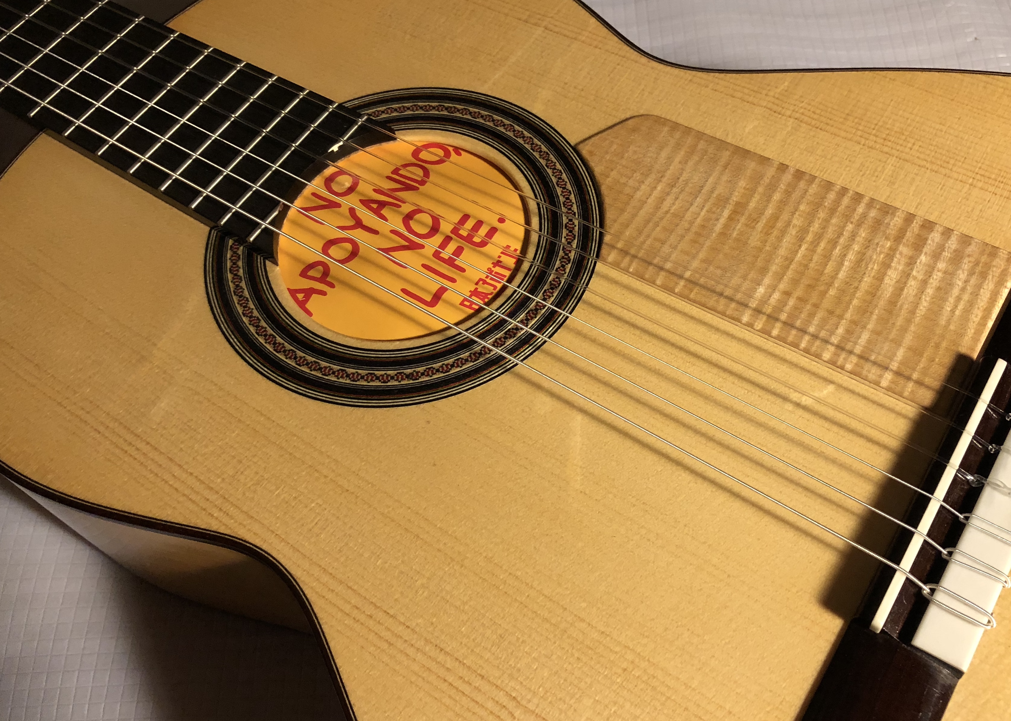 幸運にも製作者生活のスタート直後にマエストロ金氏と知り合えたことで、私の貧弱なギター作りの屋台骨は見事にグラつき、フラフラになりながらギリギリ首の皮一枚で現在に至っております。