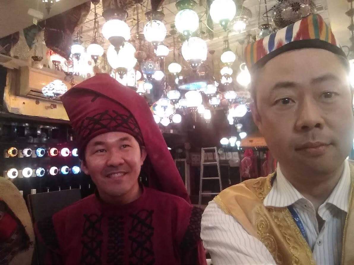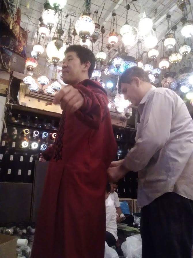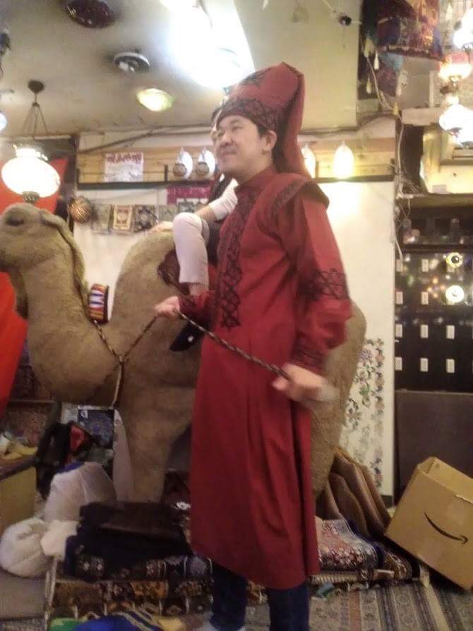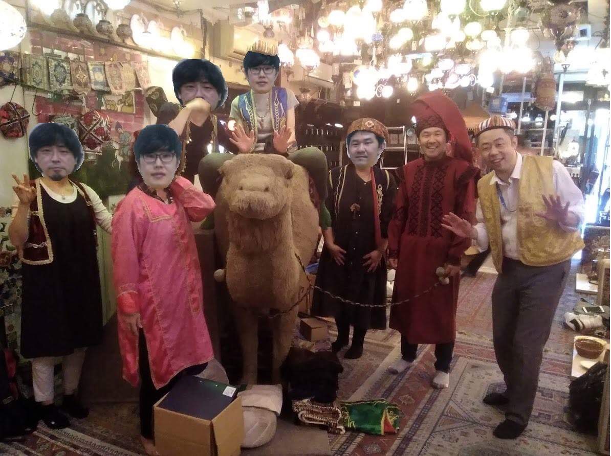 店内すべてのお客がラクダの周りに集合させられ、強制的に記念撮影。